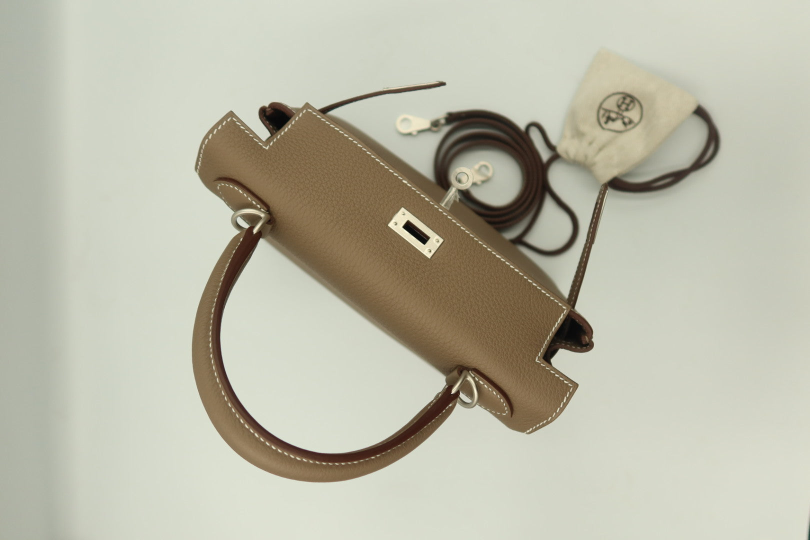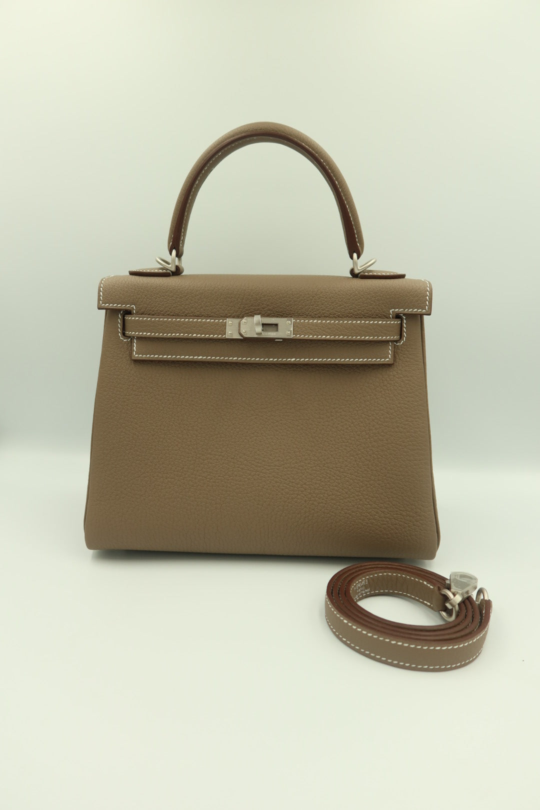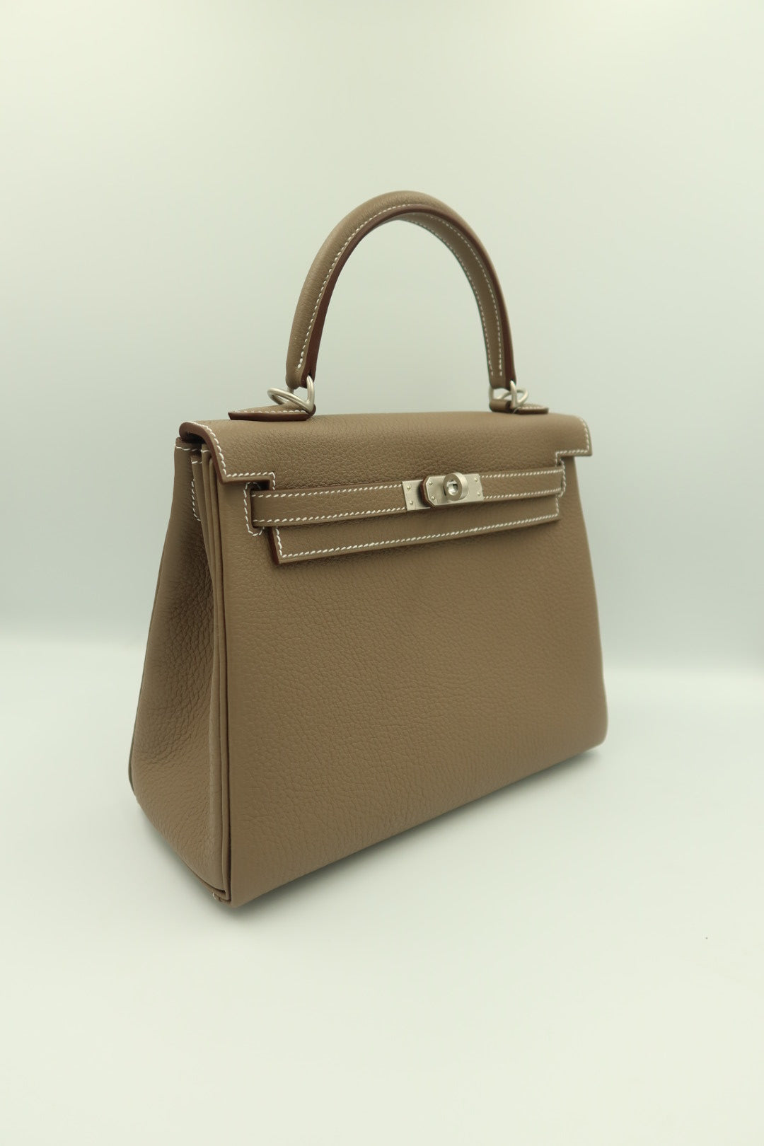 KELLY 25 RETOURNE IN ETOUPE TOGO LEATHER PHW HERMES